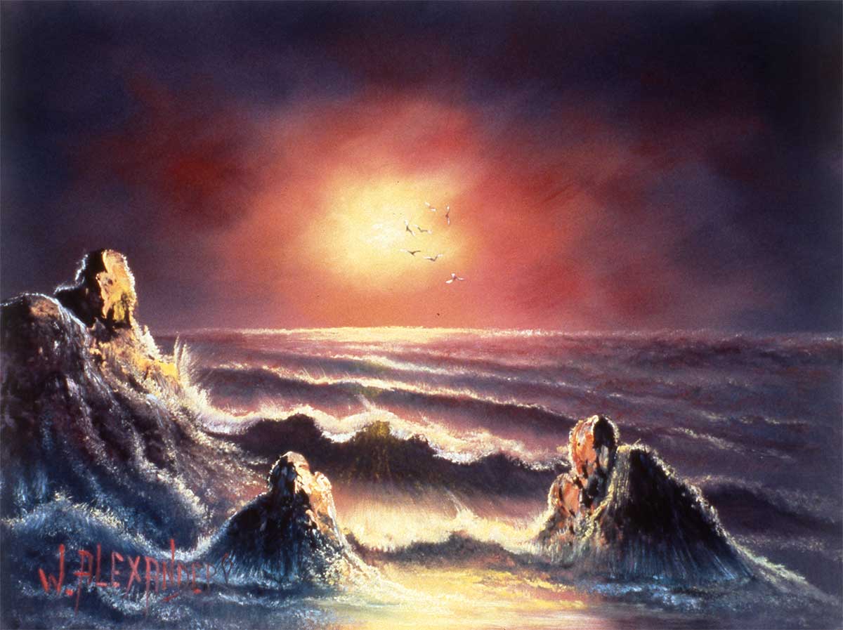 Bill spent a great deal of his time traveling up and down the West Coast of the United States. He also travelled extensively throughout the Western United States. Bill loved America and wrote about his experiences in his autobiography. The images he saw during his travels stayed with him and usually ended up on his canvas.